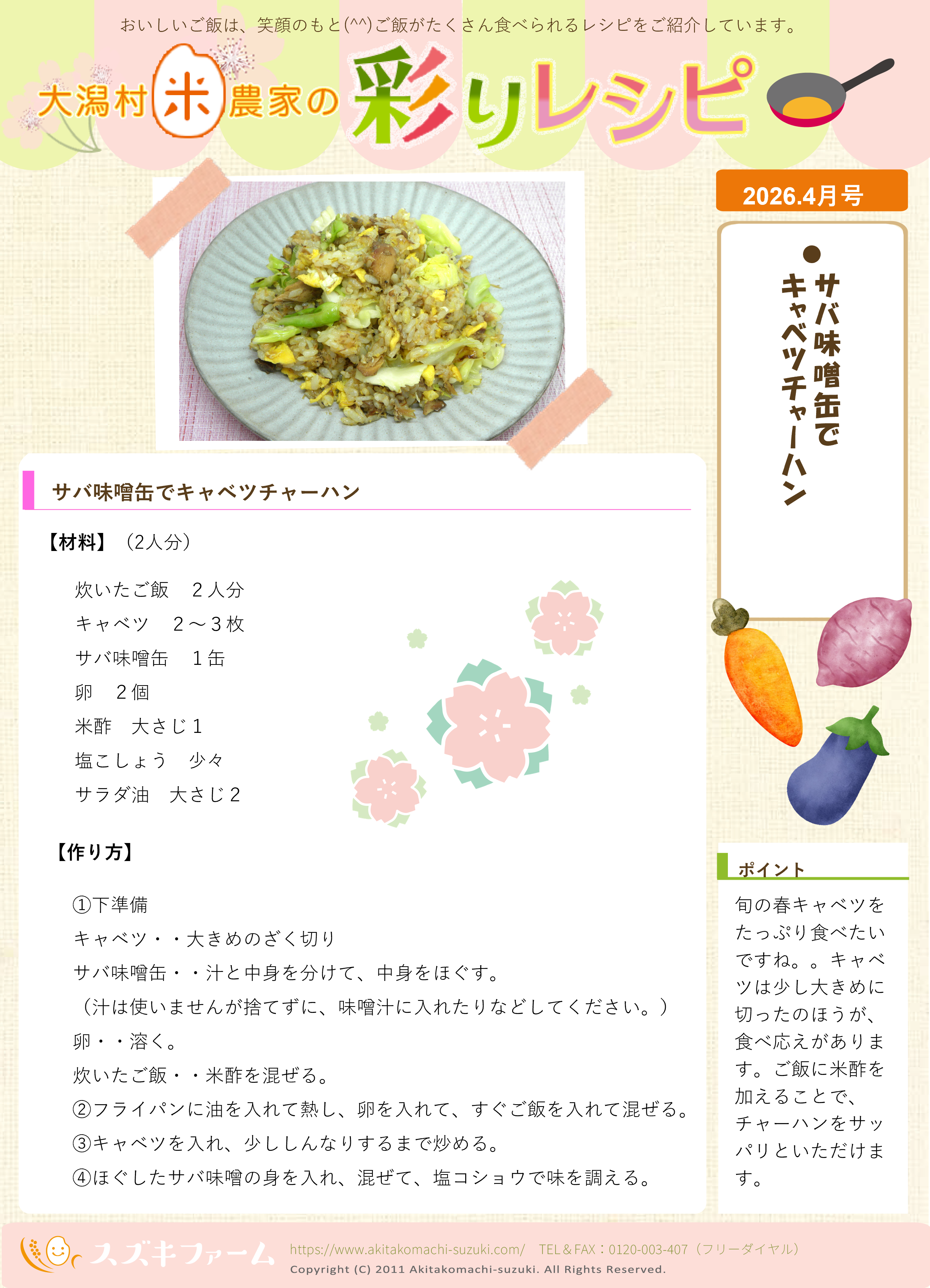 旬の春キャベツをたっぷり食べたいですね。 キャベツは少し大きめに切ったほうが、食べ応えがあります。 ご飯に米酢を加えることで、チャーハンをサッパリといただけます。